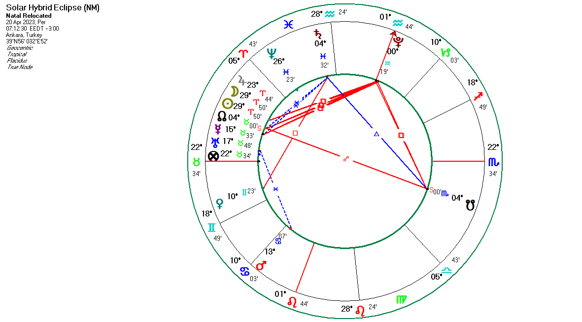 Tutulmanın 29 derecede gerçekleşmesi ise anaretik bir derece olarak adlandırılan mevkide olması itibariyle, durumların iyi ya da kötü ama yüksek ses çıkarabileceğinin, hatta krizler ya da çok önemli değişimleri beraberinde taşıyabileceğinin işaretçisi. Tutulmanın yönetici gezegeni Mars ve gezegen gökyüzünde rahatsız bir konumda yerleşimde. Tutulmanın getirdiği dışavurumsal etkileri kontrollü kullanmak çok kolay olmayacağa benziyor. Duygusal kararlar ve aslında güvenlik dürtüsü ile harekete geçmek tutulmanın ana faktörünü, göz önüne alınması gereken en esas alt tabanının oluşturuyor. Bu etki kişisel olarak içinde bulunduğumuz şartları güvenceye almak ya da hakkımızı elimize almak gibi bir hareket tarzı yaratırken, yine dünya olayları olarak baktığımızda pekâlâ savaşçı ya da savunmacı bir enerjiyi harekete geçirecek. Hazırda olan herhangi bir olay bir anda patlak verebilir. Hak, hukuk yönünde verilen kararlar ya da beklentiler, hak alma yönünde talepler yüksek seslere ve gerekirse ayak seslerine dönüşebilir. Tüm dünya üzerinde ve özellikle zaten bir süredir dünyada bazı ülkelerde yaşanan grev, halk ayaklanmaları daha da aktif hale gelebilir ve başka ülkelere hızlı bir şekilde sıçrayabilir. Burç dışından bile olsa tutulma derecesi Plüton ile kare açı yapıyor. Yenilmezliğe yürüyen tarzda bir ifade demek olan görünüm şartları coşkulu olmakla gözü pek ve yeri geldiğinde acımasız olmak arasında şekillendirecek. Beklentiler artık başkasından değil kendi şartlarını, kendi güvenliğini kendi koruma altına almak üzerine harekete geçiş tarzında işleyecek. Bu durum, iyi yönetebilenler için yeni kapılar aralarken kötü yönetenler için yıkıcı, zarar verici bir sonuç haline de dönüşebilir. Hepimize, ülkemize ve dünyaya güzel gelişmeler getirmesini dilerim.