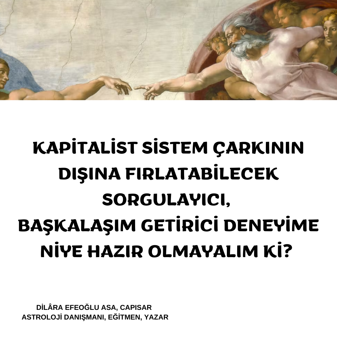 “İnsanı aniden bu tekdüze tüketim çarkının dışına fırlatabilecek aykırı, altüst edici, sorgulatıcı herhangi bir “başkalık” deneyiminden uzak tutmak üzere kurulmuştur kapitalist düzen” der yazar ve eleştirmen Byung-Chul Han. Başkalaşım deneyimlerinin çanlarını çaldığı bir döneme doğru ilerlemekteyiz. Konuyla ilgili önümüzdeki yıllar yönelik gezegen döngüleri ve geçişleri hakkında yazmaya devam ettiğim makalemi yakında sizlerle paylaşacağım. Umarım keyifle okursunuz.